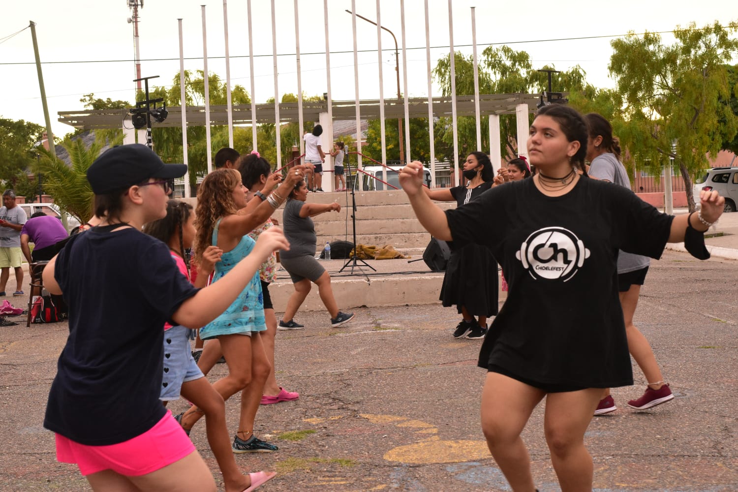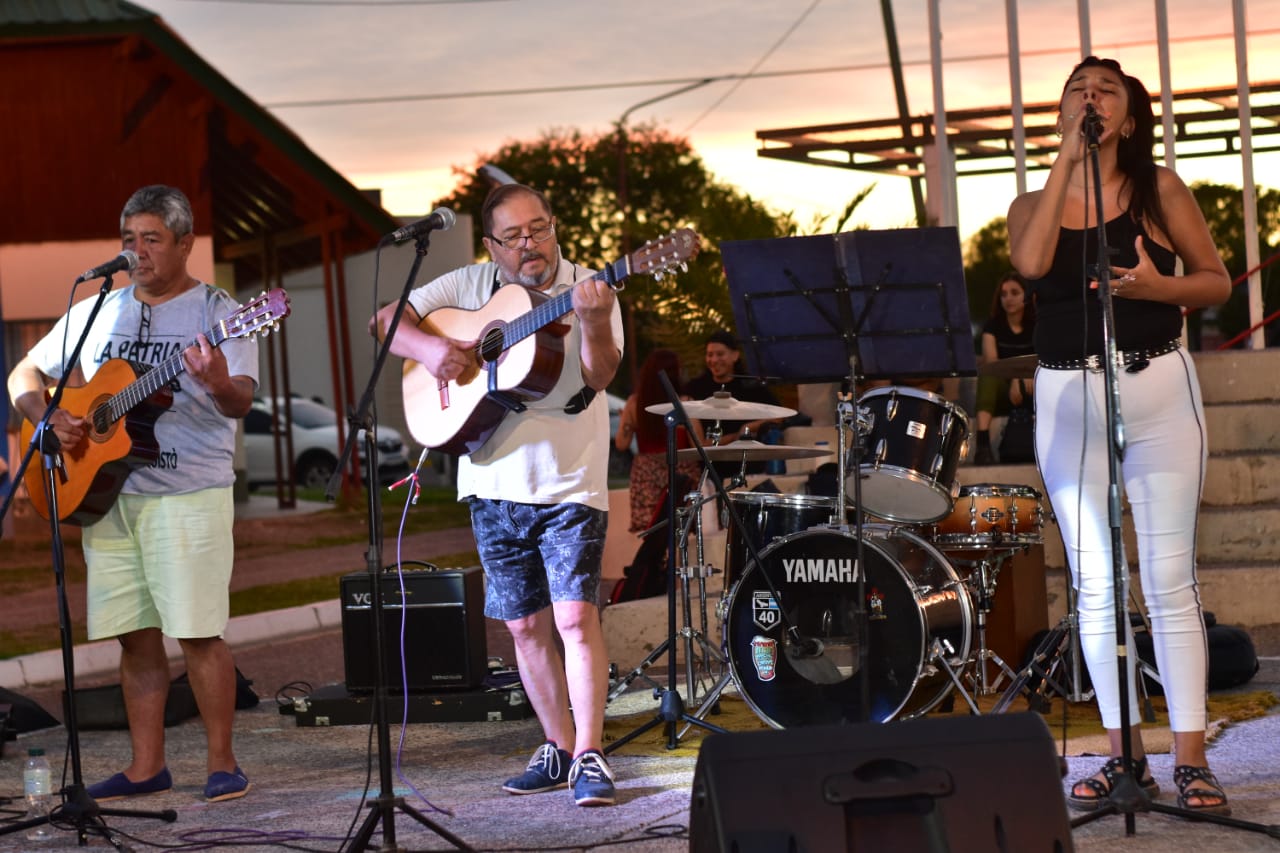 A partir de las 19 horas comenzaron las actividades con el inicio del ciclo de talleres de folclore al aire libre a cargo de la tallerista Rosario Peña, quien a través de la Dirección de Cultura municipal brindará clases gratuitas en la plaza todos los martes y viernes durante este verano.